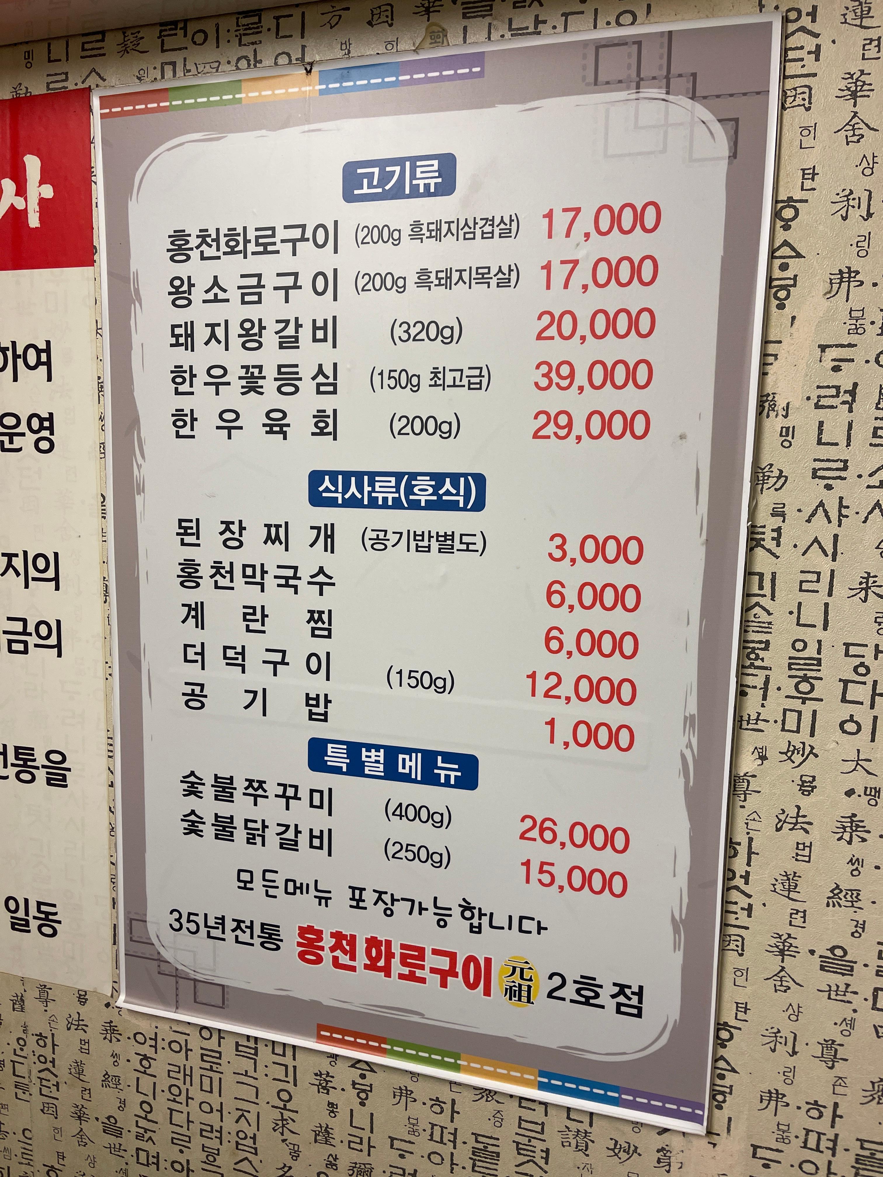 간판에는 중간에 홍천원조화로구이라고 되어 있는데 지도에는 홍천화로구이2호점으로 검색해야 나온다.