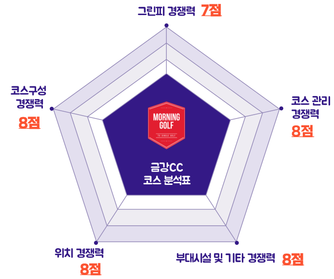 평가는 그린피 / 위치 접근성 / 코스 구성 재미 / 코스 관리 / 기타 부대시설 상태 등