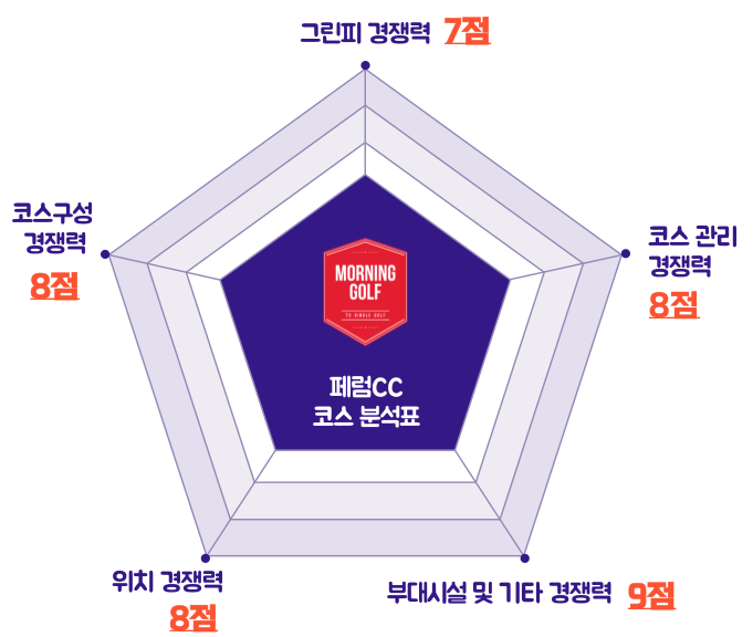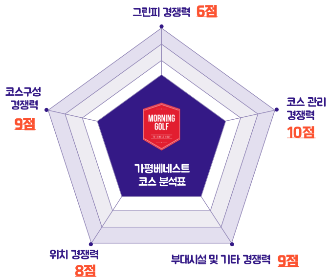 평가는 그린피 / 위치 접근성 / 코스 구성 재미 / 코스 관리 / 기타 부대시설 상태 등